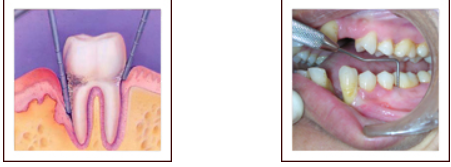 Scaling and root planing is the most common and conservative form of treatment for periodontal (gum) disease. Scaling is the removal of calculus (commonly called tartar) and plaque that attach to the tooth surfaces. The process especially targets the area below the gum line, along the root. Plaque is more likely to stick to rough surfaces. For this reason, the root surface is smoothed down in a process called root planing. Root planing removes any remaining calculusand smoothes irregular areas of the root surface.