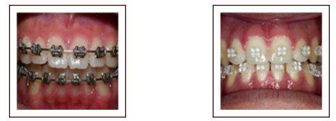 Ceramic brackets are made of composite materials. They are very strong and generally do not stain. Adults like to choose ceramic because they “blend in” with the teeth and are less noticeable than metal.